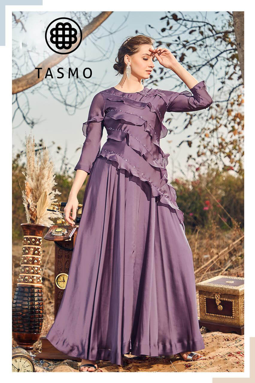 Gracefully sculpted asymmetrical gown in luxurious silk, designed with fluid bias-cut ruffles that cascade effortlessly for a dynamic, ethereal movement. A perfect fusion of modern elegance and timeless sophistication.