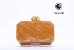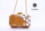 Elevate your style with our breathtaking gold resin clutch, meticulously handcrafted with love and precision. Each piece is a one-of-a-kind creation, radiating timeless elegance and irresistible charm. With its lustrous finish and intricate detailing, this clutch is destined to captivate attention and ignite conversations wherever you grace the room.