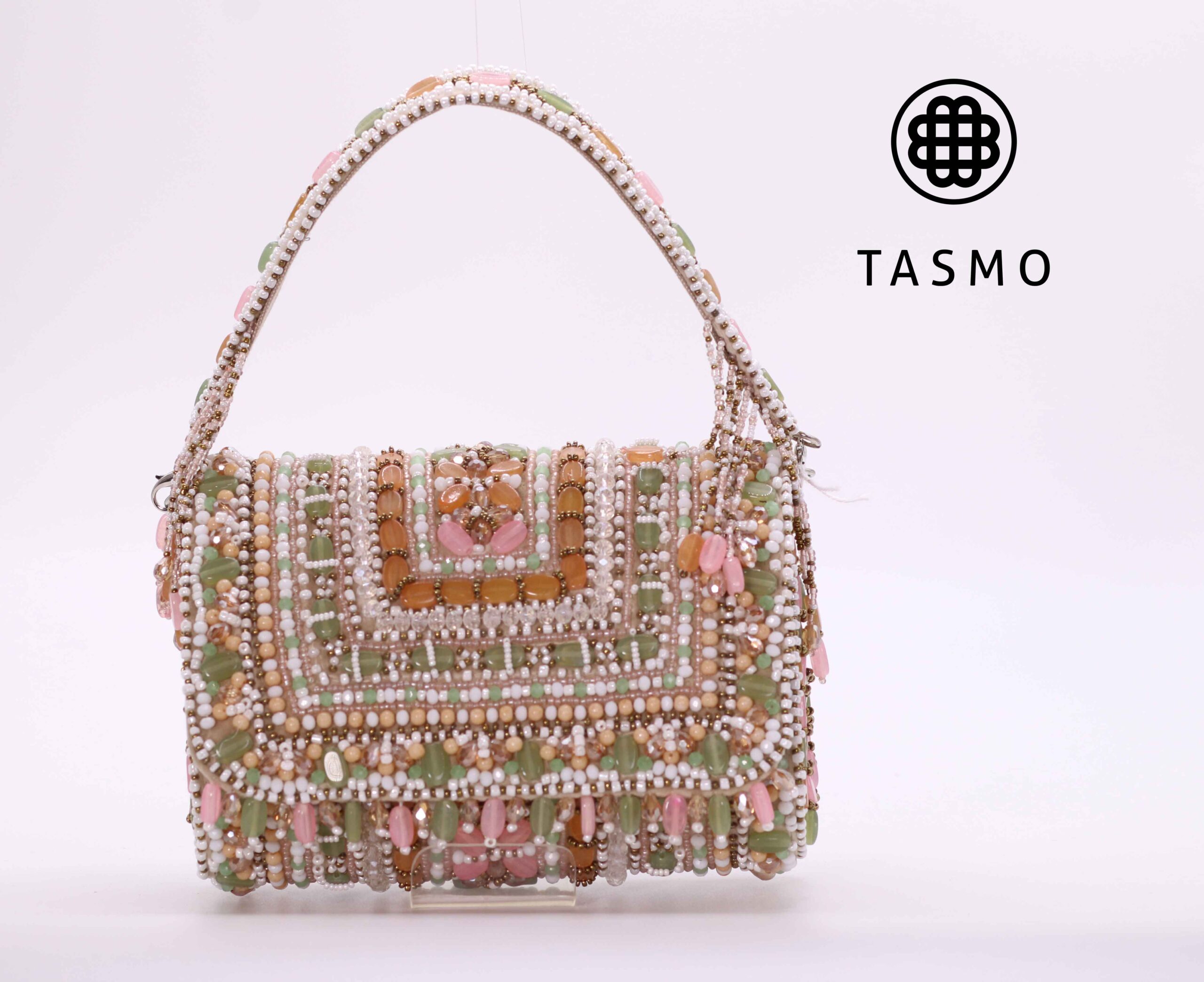 TASMO hand clutch collection is a masterpiece of artistry and opulence — each piece meticulously handcrafted to embody elegance and exclusivity. Designed in timeless silhouettes and adorned with the finest embellishments — from shimmering crystals and lustrous pearls to radiant mother of pearl and intricate metalwork — every clutch is a jewel in itself. These limited-edition creations are not just accessories, but heirloom-worthy statements of luxury, sophistication, and refined taste, crafted for those who desire nothing less than the extraordinary.