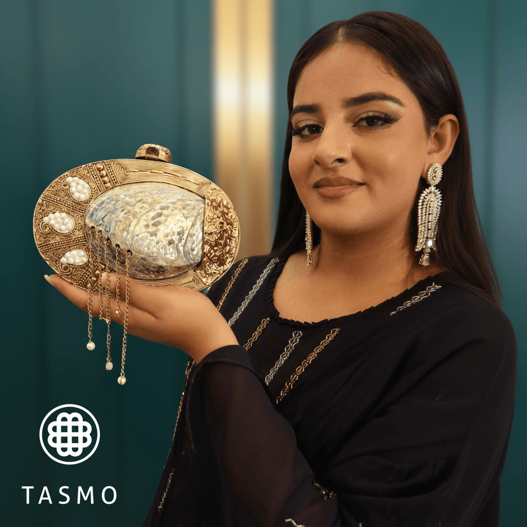 TM 7968 – Abalone & Filigree Clutch: A Symphony of Iridescence and Gold