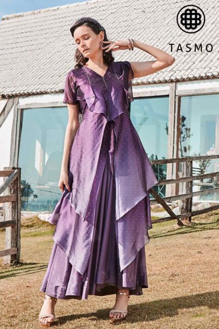 TM 4027/A – A Symphony of Plum Satin and Graceful Layers, Radiating Timeless Royal Elegance.